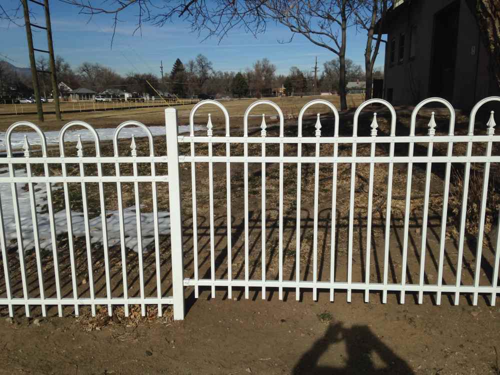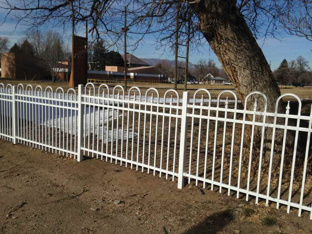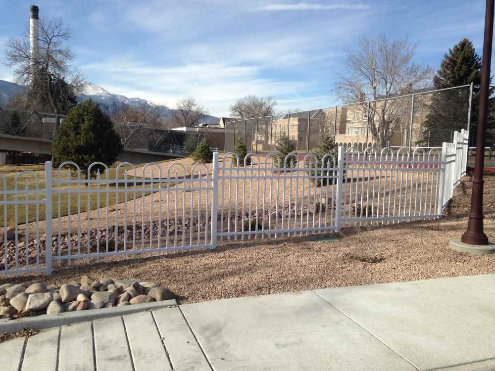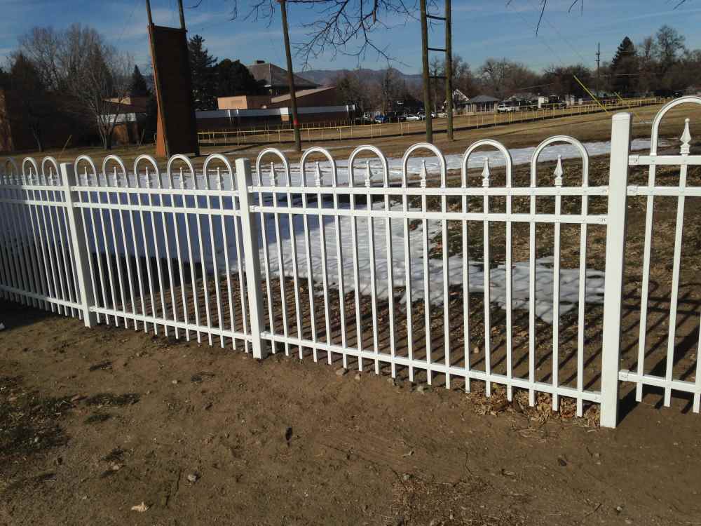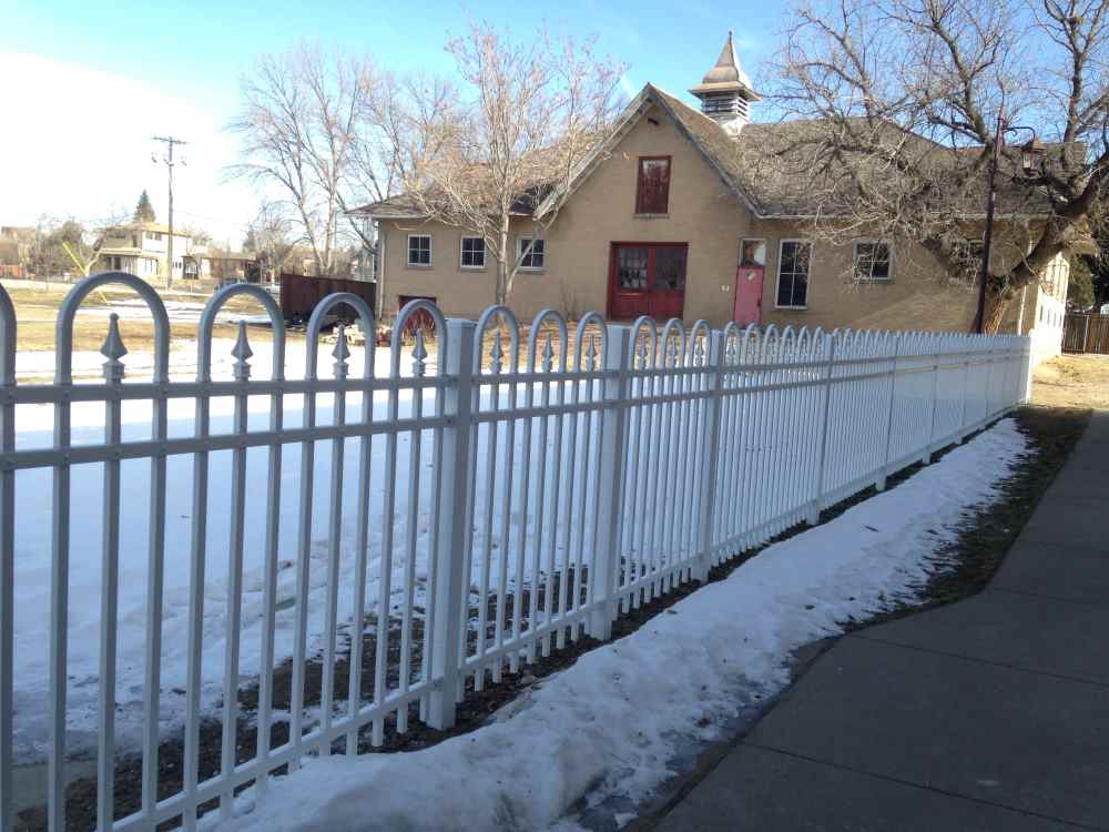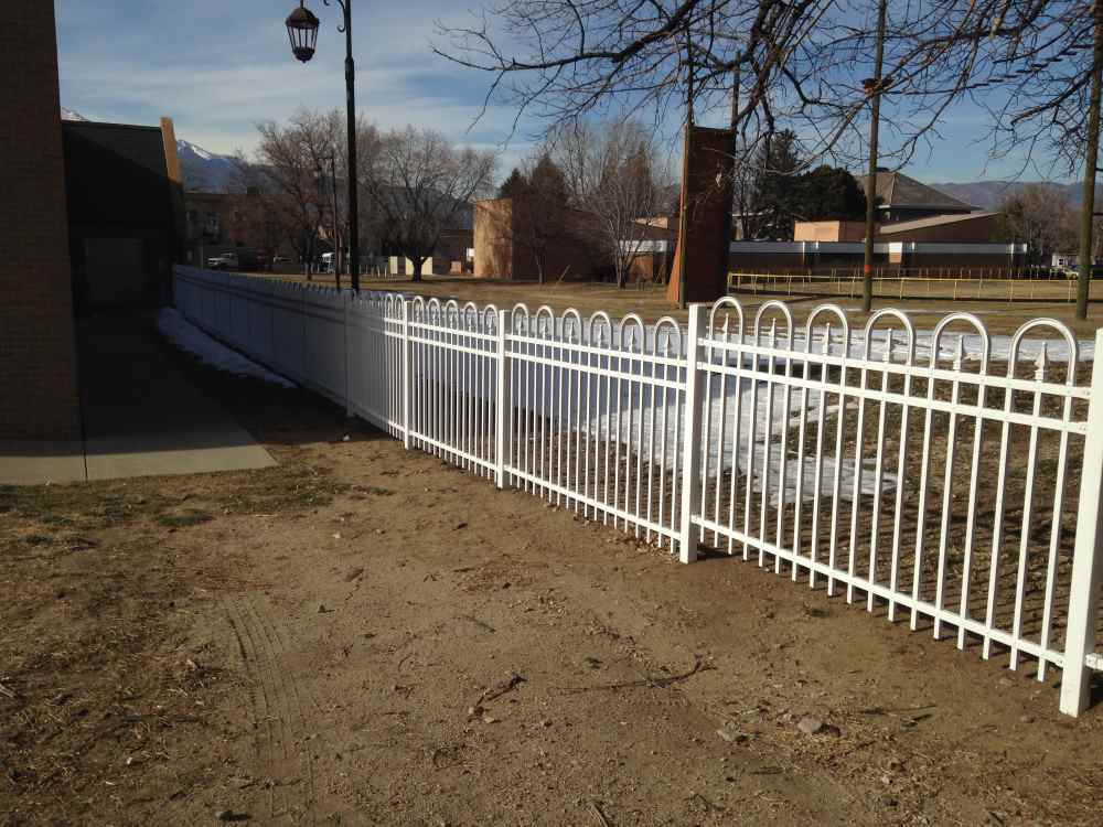Industrial white ornamental fence at a school
