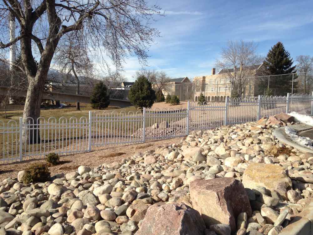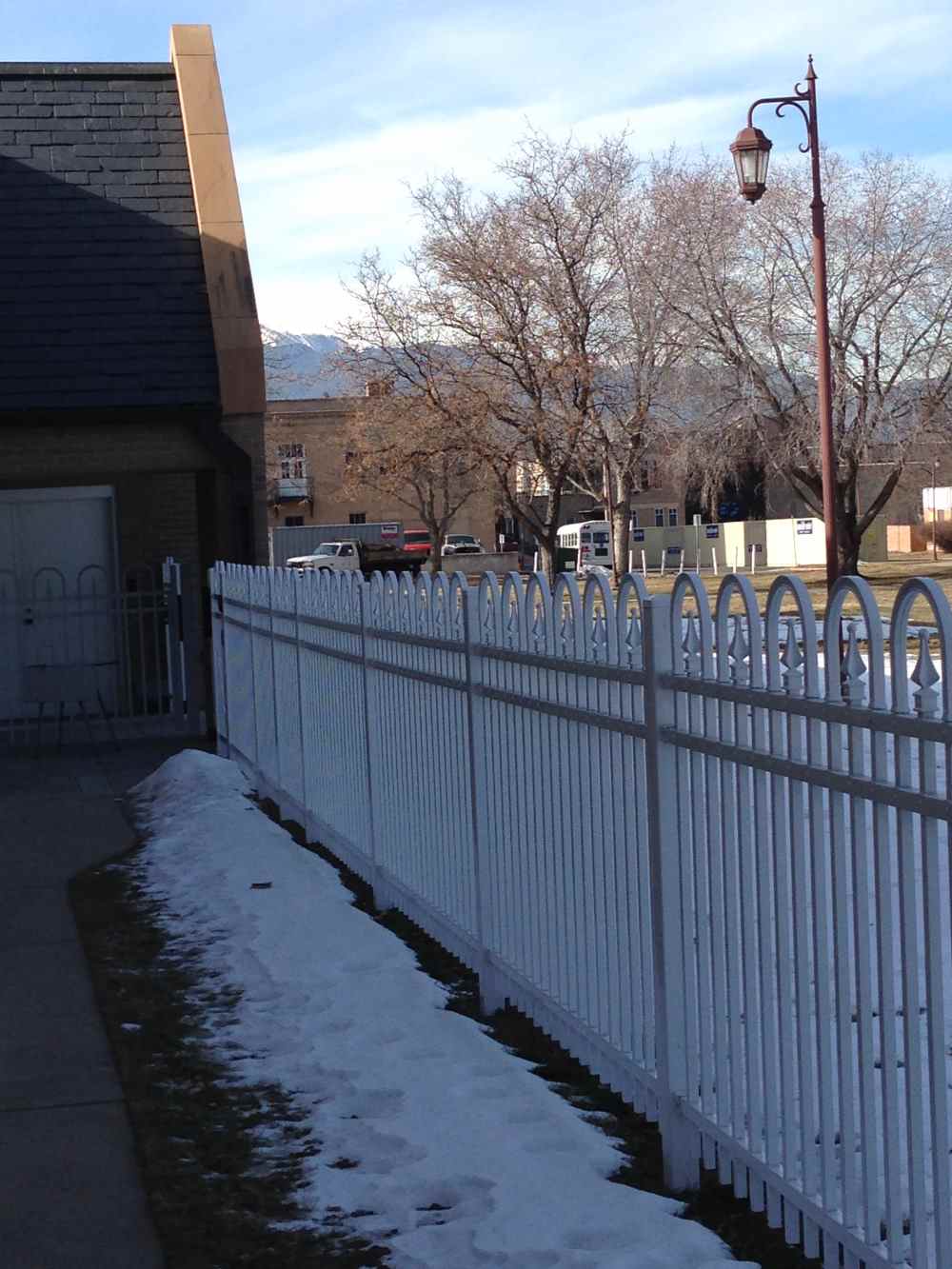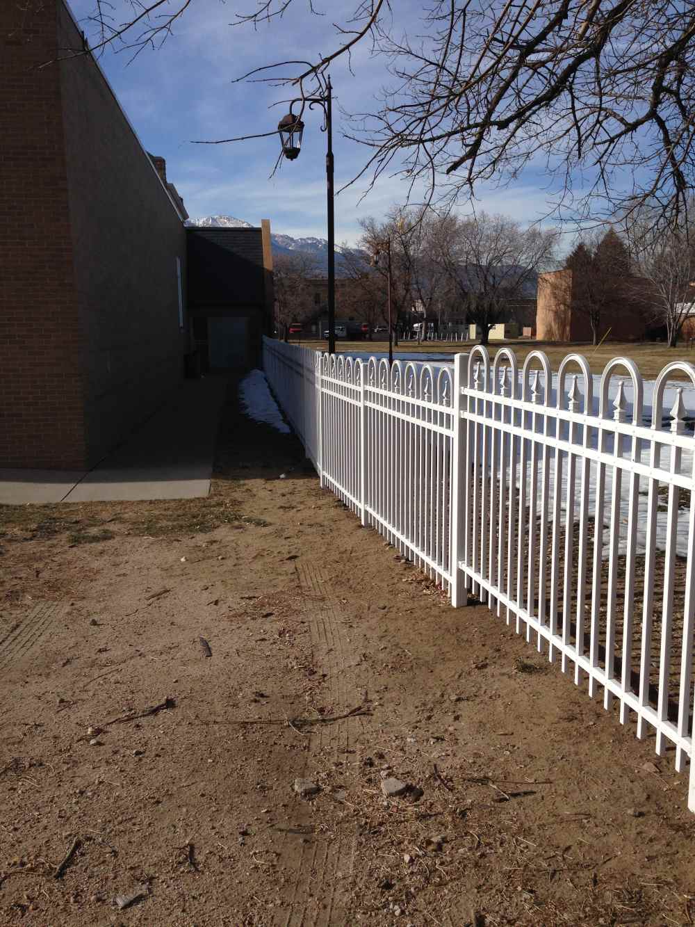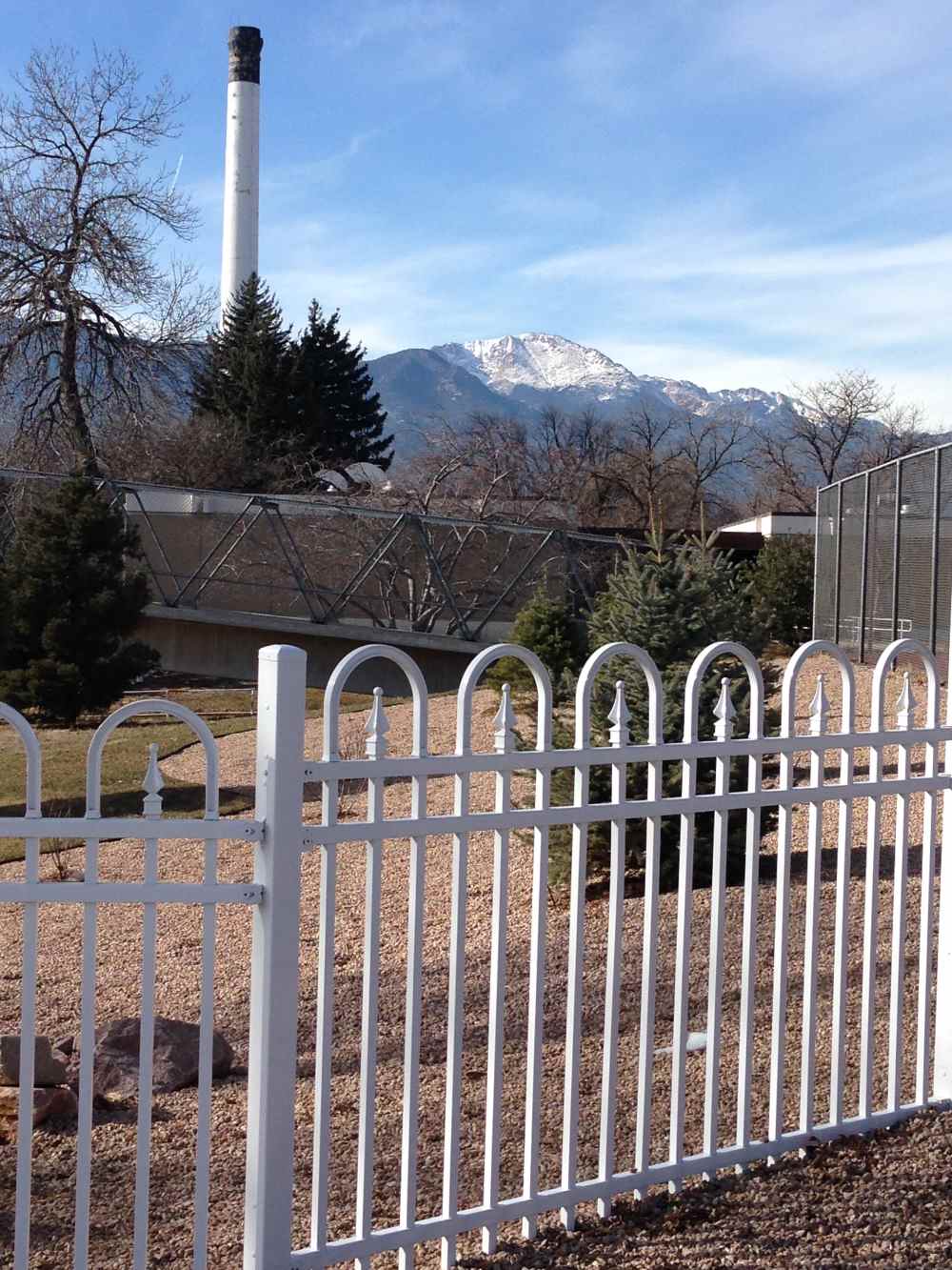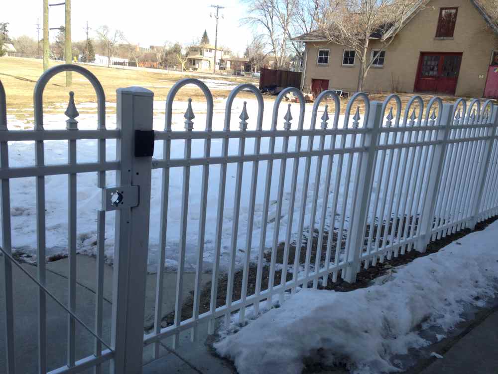 Industrial white ornamental fence at a school